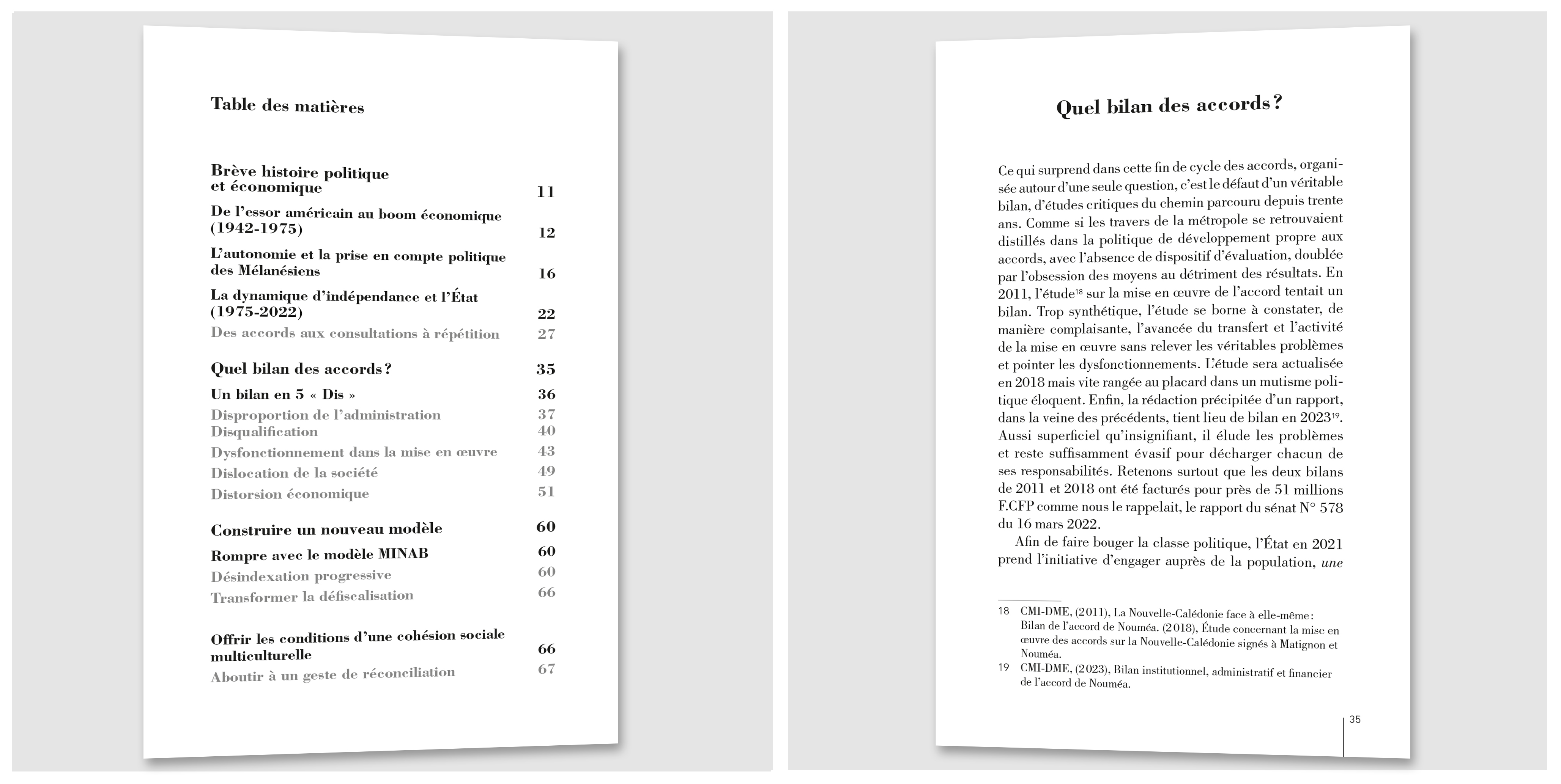 D'abord la couverture. Son orientation chromatique reprend les couleurs de la Nouvelle-Calédonie tandis que l'agencement structurel de la composition se décline selon un jeu de lignes qui rythment l'espace pour mieux éclairer l'enjeu principal étayé par le titre du livre. Ensuite la mise en page intérieure dont la difficulté principale releva du format du livre. Un format poche, 11 cm x 17 cm précisément, exigeant une grande clarté quant à l'intégration des nombreuses notes de bas de page, du sommaire et du lexique associés. Toutes ces contraintes sont enrichissantes, à un problème correspond toujours une solution !